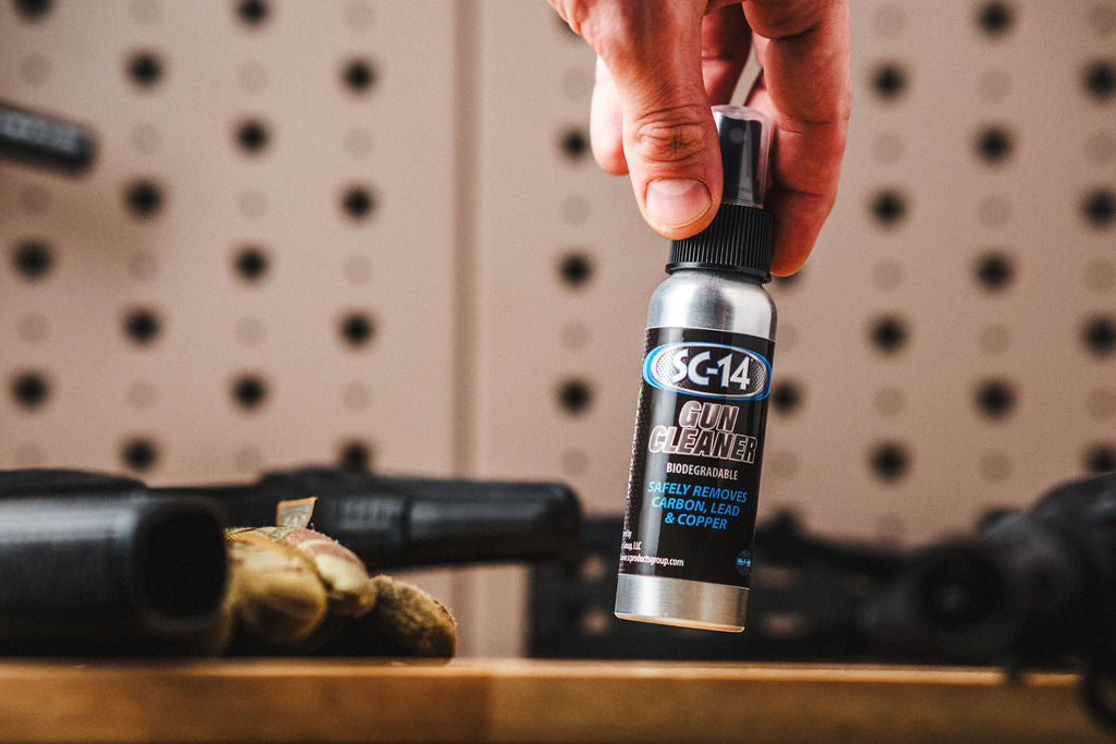 "SC-14® Gun Cleaner utilizes a proprietary formula that lifts oil, grease, soot and various other types of hydrocarbons from the surface, effectively cleaning your firearm from the inside out." - Peterson's Hunting, MARCH 2024